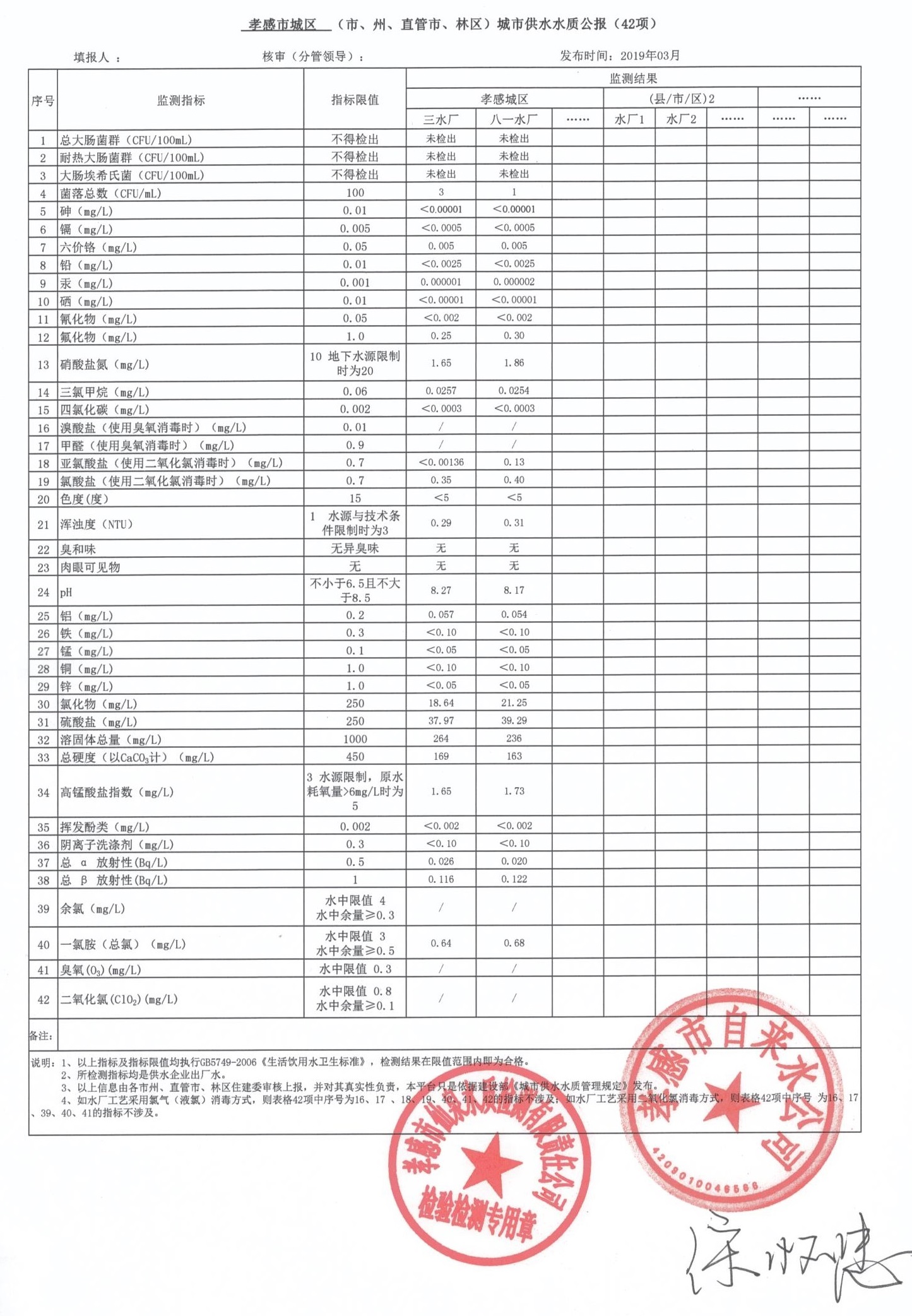2019年3月水質報告