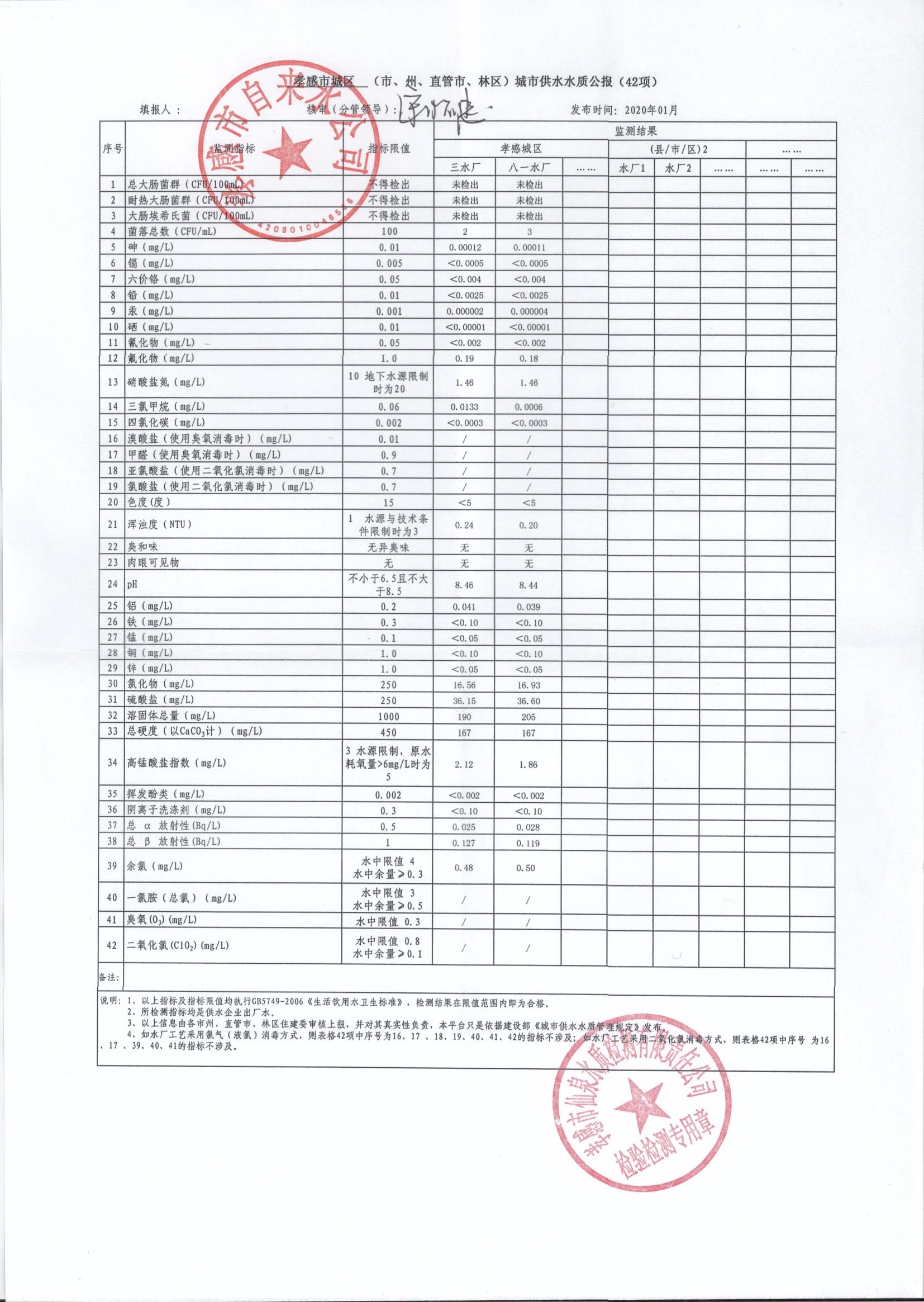 2020年1月水質(zhì)報告