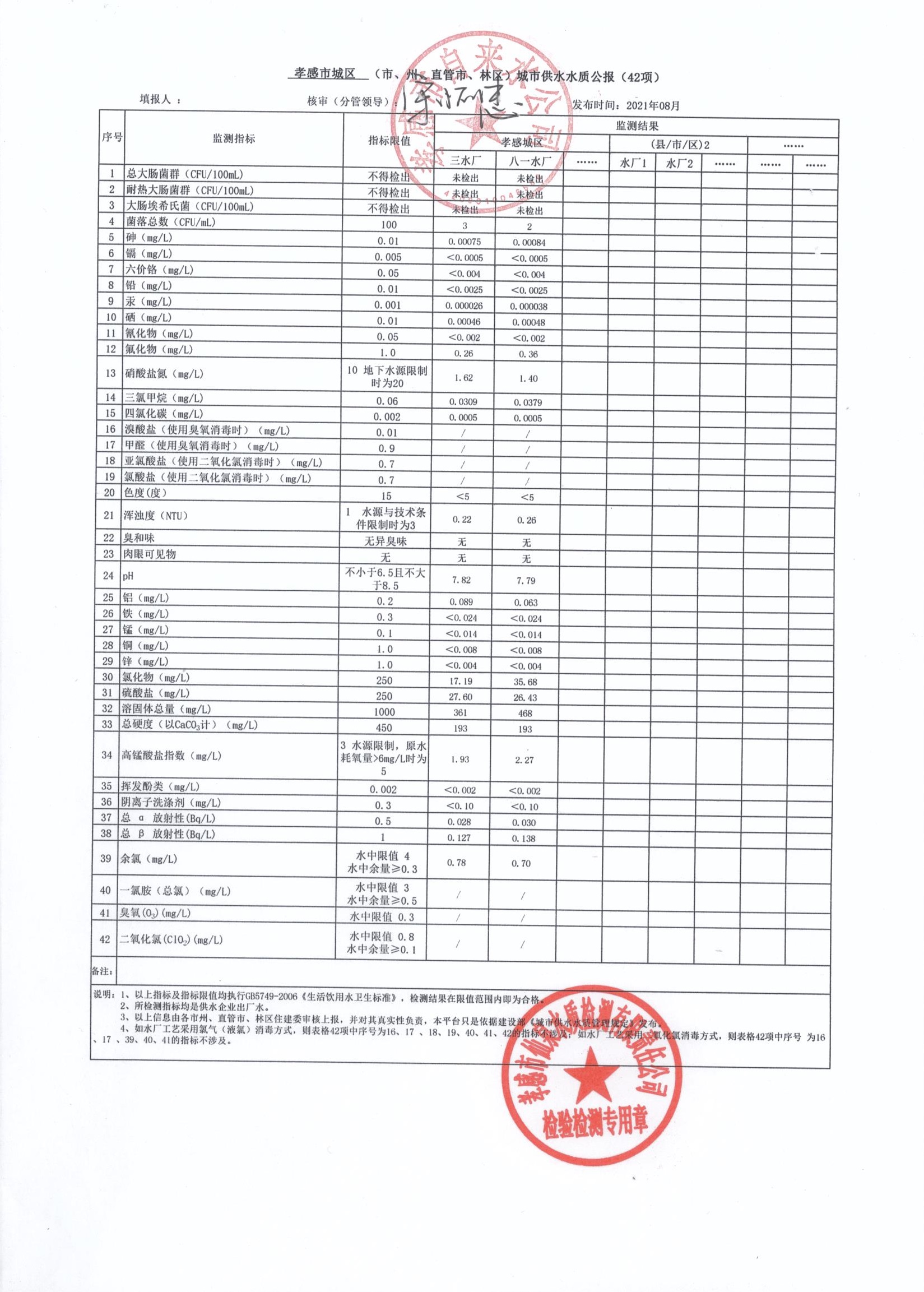 2021年8月水質報告